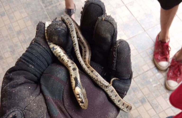 Στη συνέχεια, μετέβη στο σημείο αστυνομικός, ο οποίος ήταν εκτός υπηρεσίας αλλά γνωρίζει τη «χαρτογραφία» των φιδιών στη χώρα, σύμφωνα με το τοπικό μέσο, και, αφού τους είπε ότι πρόκειται για ακίνδυνο νερόφιδο, με γάντια το απομάκρυνε, για να το απελευθερώσει λίγο αργότερα έξω από τον Βαθύλακκο, στη φύση, με τη βοήθεια, πάντα, των κατοίκων.