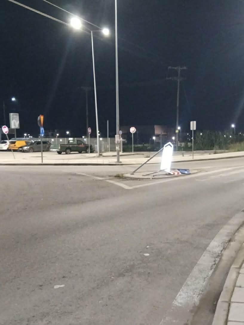 Σύμφωνα με τις πρώτες πληροφορίες, λίγο πριν τις 7:00 μ.μ., Ι.Χ. αυτοκίνητο που οδηγούσε νεαρός έχασε τον έλεγχο, εξετράπη της πορείας του και παρέσυρε πινακίδες οδικής σήμανσης, τις οποίες και ξήλωσε.