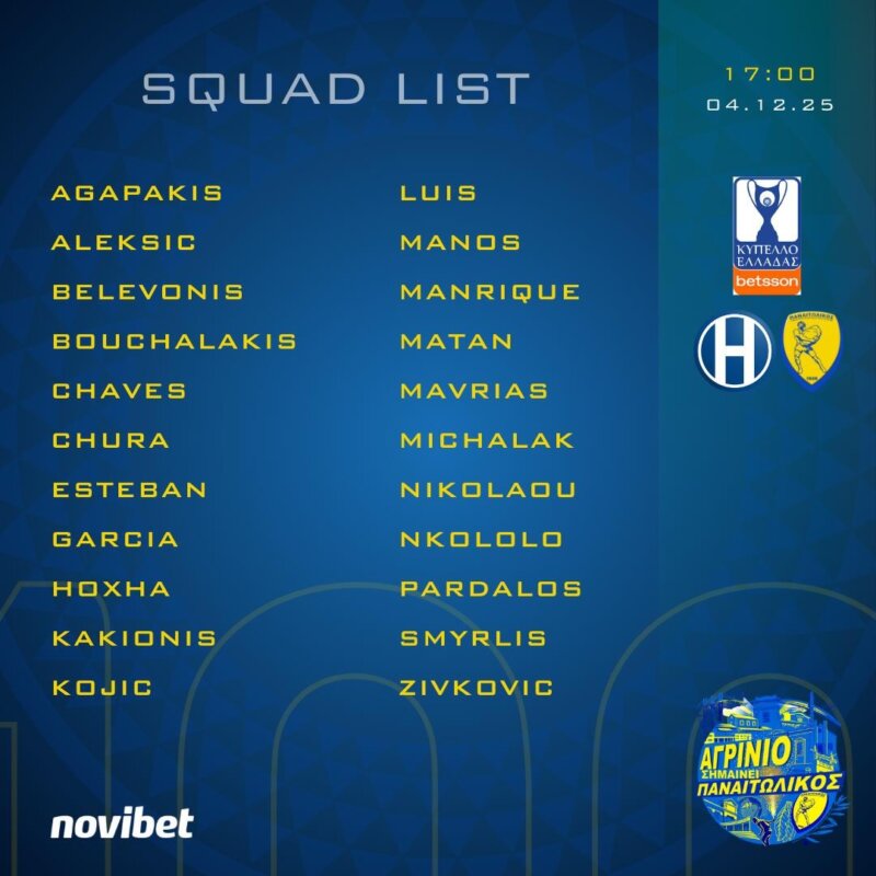 Εκτός, οι Στάγιτς, Αποστολόπουλος και Μλάντεν όπως και οι Αγκίρε και Κοντούρης.