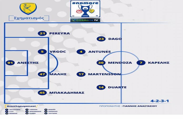 Γιάννης Αναστασίου και Πέδρο Μαρτίνς κατέληξαν στις ενδεκάδες με τις οποίες θα ξεκινήσουν την επαναληπτική αναμέτρηση της Προημιτελικής Φάσης του Κυπέλλου Ελλάδας για τη σεζόν 2021 – 2022.