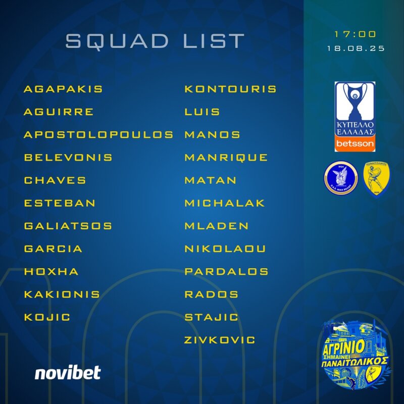 Το Κύπελλο Ελλάδας Betsson ξεκινά νωρίτερα από ποτέ και η Π.Α.Ε. Παναιτωλικός γνωστοποίησε την αποστολή για τον Βόλο!