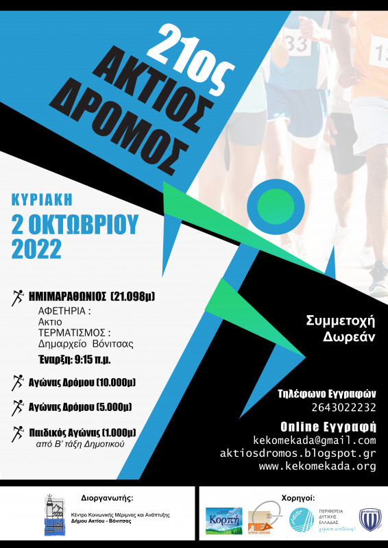 Ο Άκτιος Ημιμαραθώνιος Δρόμος μετά από μια διετίας αναβολής λόγο κορονοιού είναι πάλι εδώ και έρχεται για να διαφημίσει την περιοχή μας και για να υποδεχτεί αθλητές από όλη την Ελλάδα αλλά και πλήθους κόσμου από τον Δήμο Ακτίου Βόνιτσας και τους όμορους δήμους της Λευκάδας ,της Ηπείρου και της Αιτωλοακαρνανίας.