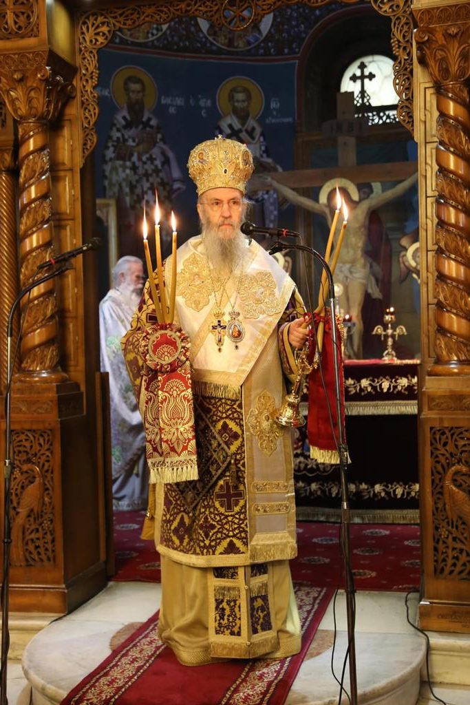 Ευχαρίστησε τους ιερείς και διακόνους με τους οποίους συλλειτούργησαν, τους συνεργάτες του μακαριστού Μητροπολίτου Θεοκλήτου, τους ιεροψάλτες του Ιερού Ναού και όλους τους εκκλησιασθέντες.