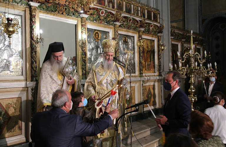 Προεξάρχοντος του Σεβασμιωτάτου Μητροπολίτου Ναυπάκτου και Αγίου Βλασίου και Τοποτηρητού της Ιεράς Μητροπόλεως Αιτωλίας και Ακαρνανίας κ. Ιεροθέου εορτάσθηκε η εορτή των εορτών και η πανήγυρη των πανηγύρεων στον Ιερό Μητροπολιτικό Ναό Αγίου Σπυρίδωνος στην Ιερά Πόλη του Μεσολογγίου.