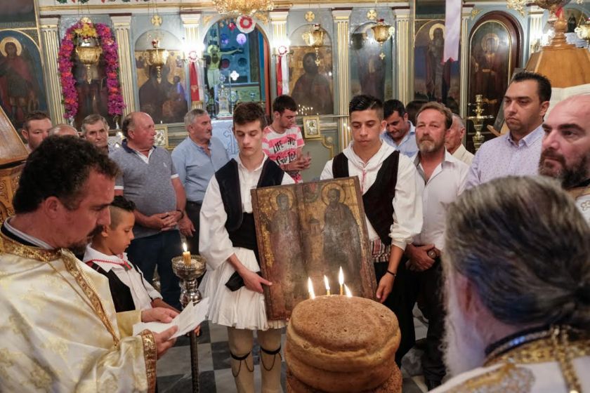 Μετά το πέρας του εσπερινού ακλούθησε η Λιτάνευση της εικόνας των Αγίων Αποστολών στη Δρυιπίδα με τη συνοδεία όλων των παραβρισκόμενων στον Ιερό Ναό, ενώ στη συνέχεια ακολούθησε η καθιερωμένη μουσικοχορευτική εκδήλωση, η οποία εξελίχτηκε σε ένα μεγάλο γλέντι.
