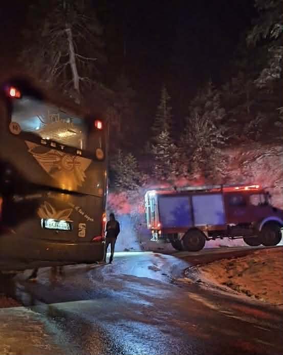 Σύμφωνα με πληροφορίες, πρόκειται για τουριστικό λεωφορείο που μετέφερε τη θεατρική ομάδα του 2ου Γυμνασίου Καρπενησίου.