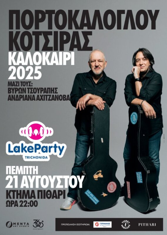 Την Πέμπτη, 21 Αυγούστου ο Νίκος Πορτοκάλογλου, o σπουδαίος τραγουδοποιός με πλούσιο συνθετικό έργο, και ο Γιάννης Κότσιρας, ένας από τους κορυφαίους ερμηνευτές της γενιάς του, ενώνουν τις δυνάμεις τους για να δημιουργήσουν μια μοναδική μουσική εμπειρία, γεμάτη συναίσθημα, ενέργεια και αυθεντικότητα στην σκηνή του Lake Party.