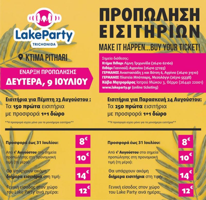 Lake Party Τριχωνίδα 2018: Ξεκινά η προπώληση εισιτηρίων!