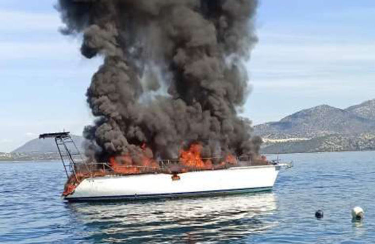 Στο σημείο έφθασαν άμεσα σκάφος του Λιμενικού και πυροσβέστες, οι οποίοι επιχείρησαν για την κατάσβεσή της.