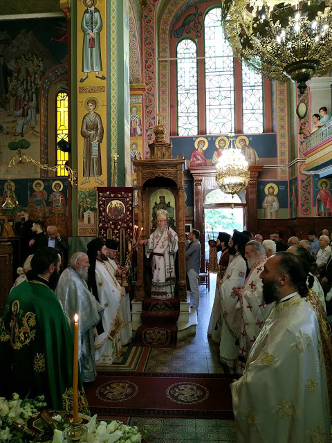 Την Δευτέρα του Αγίου Πνεύματος το πρωί, τελέσθηκε η Ακολουθία του Όρθρου και στην συνέχεια η Πανηγυρική Αρχιερατική Θεία Λειτουργία ιερουργούντος και ομιλούντος του Σεβασμιωτάτου Μητροπολίτου Αιτωλίας και Ακαρνανίας κ.Κοσμά, ο οποίος μεταξύ άλλων είπε: