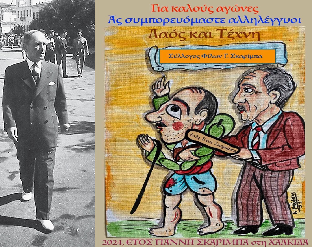 Στις 24 Ιανουαρίου συμπληρώνονται 40 χρόνια από το θάνατό του και γι’ αυτό το δημοτικό Συμβούλιο του δήμου Χαλκιδέων ομόφωνα κήρυξε το 2024 ως ΕΤΟΣ. Γ. ΣΚΑΡΙΜΠΑ, αποδεχόμενο σχετική πρόταση του Συλλόγου Φίλων Γ. Σκαρίμπα.