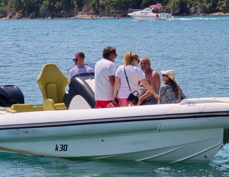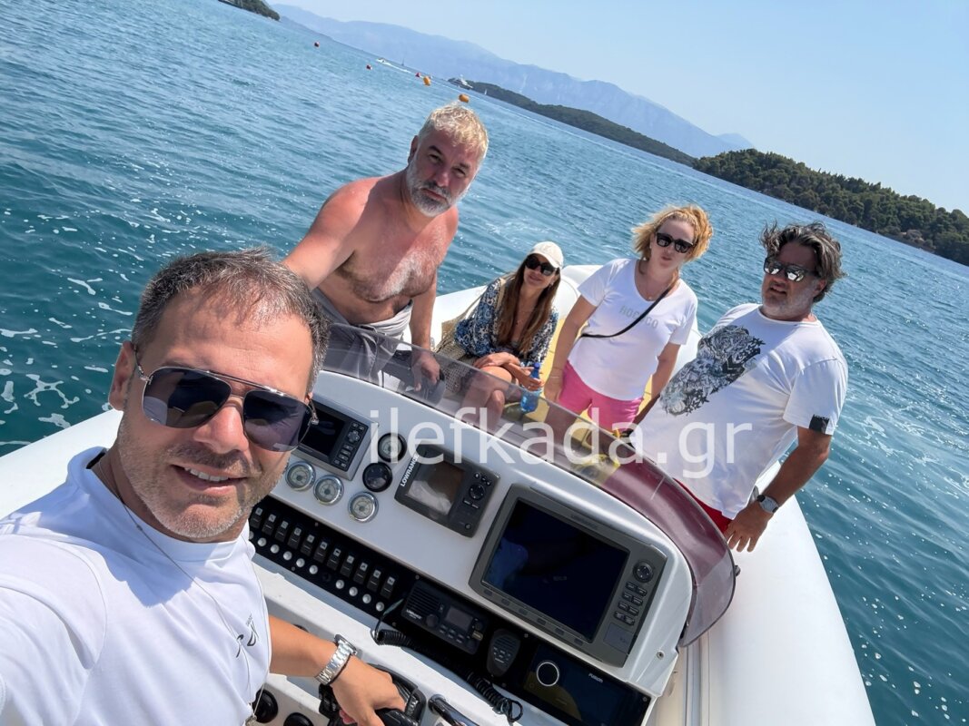 Tο ζευγάρι πραγματοποίησε και θαλάσσια βόλτα με σκάφος γύρω από το Νυδρί, εξερευνώντας τις μαγευτικές ακτές και τα καταγάλανα νερά της περιοχής.
