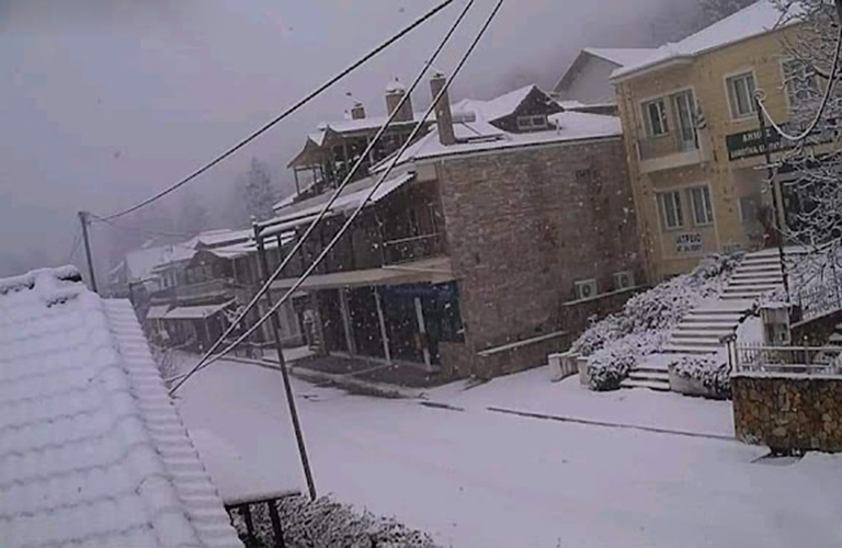 Στα λευκά έχουν ντυθεί τα ορεινά χωριά των Παρακαμπυλίων από τη χιονόπτωση, η οποία έχει ξεκινήσει από τις πρωινές ώρες.
