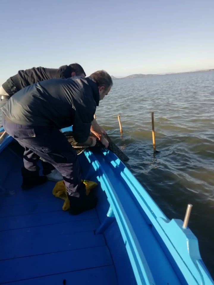 Aφαίρεση του παράνομου είδους αλιείας των βολκών από την Λιμνοθάλασσα Ι.Π. Μεσολογγίου σε συνεργασία του τμήματος εποπτείας & φύλαξης του Φορέα Διαχείρισης Λιμνοθάλασσας Μεσολογγίου – Ακαρνανικών Όρεων με το Λιμεναρχείο Μεσολογγίου.