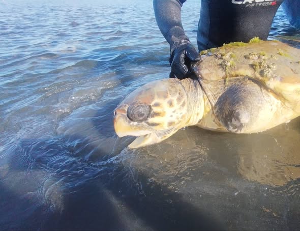 Στη Λιμνοθάλασσα Ι.Π. Μεσολογγίου – Αιτωλικού το Σάββατο, 27 Δεκεμβρίου 2025 ο εθελοντής Λάμπρος Χαρέλος προχώρησε στη διάσωσης της χελώνας Caretta Caretta.
