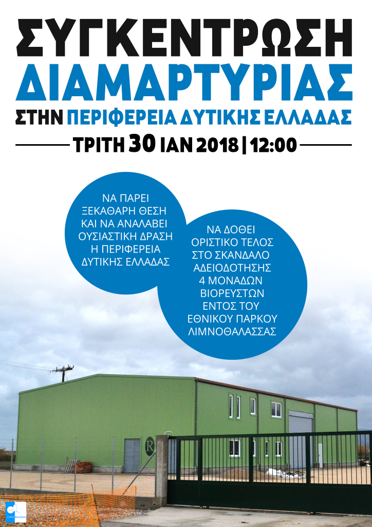 Ο βασικός λόγος της επερχόμενης κινητοποίησης στην Περιφέρεια Δυτικής Ελλάδας, την Τρίτη 30.01.2018, είναι η διαμαρτυρία μας απέναντι στην πολιτική υποκρισία που διαφαίνεται και στην ανακοίνωση των εκπροσώπων της περιφέρειας: από τη μια περπατούν στους δρόμους του ΕΣΠΑ με σημαία τον οικοτοτουρισμό και από την άλλη αδιαφορούν και δεν παίρνουν θέση για την προστασία του Εθνικού Πάρκου.