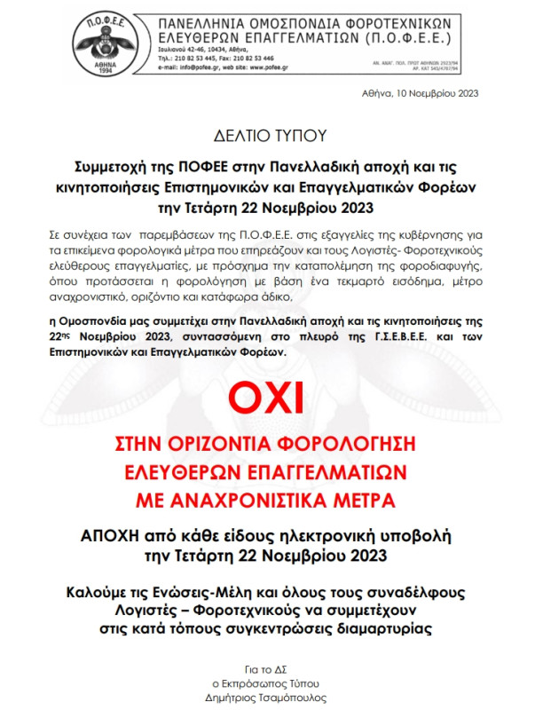 «Τα τελευταία χρόνια το Υπουργείο Οικονομικών και η Α.Α.Δ.Ε. έχουν νομοθετήσει και εφαρμόσει πάρα πολλούς νέους μηχανισμούς ελέγχου της φοροδιαφυγής – σύμφωνα με δικές τους δηλώσεις – όπως είναι τα myDATA, οι έμμεσες τεχνικές ελέγχου, το riskanalysis, η διασύνδεση ταμειακών με τα POS, κλπ..