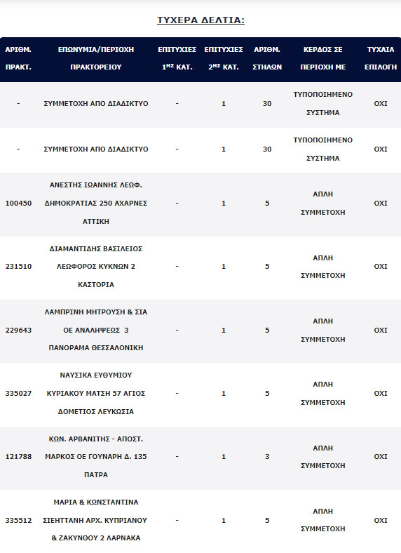 Ανάμεσα στους επιτυχόντες είναι και δύο τυχεροί από Πάτρα και Κέρκυρα ενώ υπάρχουν και κάποιοι… άγνωστοι στο ευρύ κοινό μιας και έχουν ποντάρει μέσω του διαδικτυακού και δε γίνεται γνωστό από ποια περιοχή της χώρας είναι.