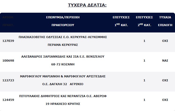 Στη 2η κατηγορία 5άρι βρέθηκαν τέσσερα(4) τυχερά δελτία που το καθένα κερδίζει 1.000€ το μήνα για 1 χρόνο».