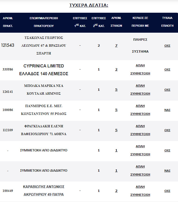 Στη 2η κατηγορία 5άρι βρέθηκαν εννέα (9) τυχερά δελτία που το καθένα κερδίζει 1.000€ το μήνα για 1 χρόνο.