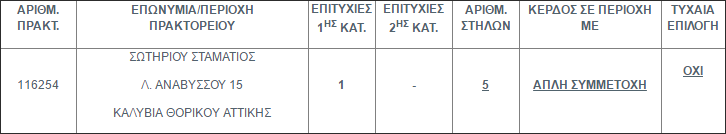 Ένα (1)τυχερό δελτίο βρέθηκε στην1η κατηγορία (6άρια) κατά τη σημερινή διαλογή της 1784ης κλήρωσης του ΛΟΤΤΟ που κερδίζει το ποσό των € 300.000.