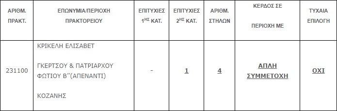 Επίσης στην δεύτερη κατηγορία (5+1) βρέθηκε ένα (1) τυχερό δελτίο που κερδίζει το ποσό των€50.000,00.