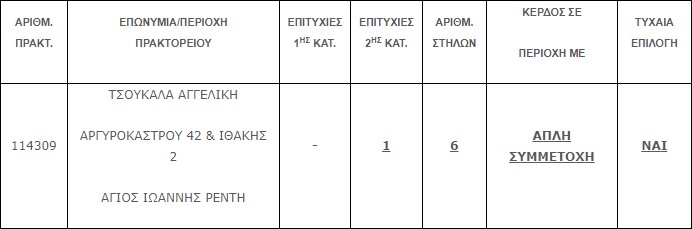 Επίσης στην δεύτερη κατηγορία (5+1) βρέθηκε ένα (1) τυχερό δελτίο που κερδίζει το ποσό των € 50.000,00.