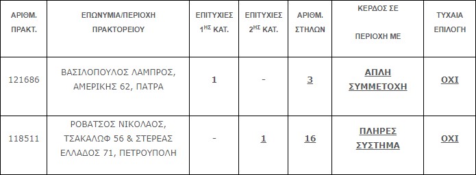 Επίσης στην δεύτερη κατηγορία (5+1) βρέθηκε ένα (1) τυχερό δελτίο που κερδίζει το ποσό των € 50.000,00.