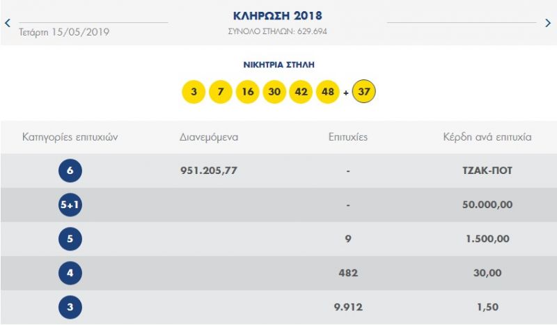 €1.000.000 τουλάχιστον θα μοιραστούν οι τυχεροί της 1ης κατηγορίας στην επόμενη κλήρωση του ΣΑΒΒΑΤΟΥ 18/05/2019 μετά το ΤΖΑΚ-ΠΟΤ που σημειώθηκε κατά τη σημερινή διαλογή της 2018ης κλήρωσης του ΛΟΤΤΟ.