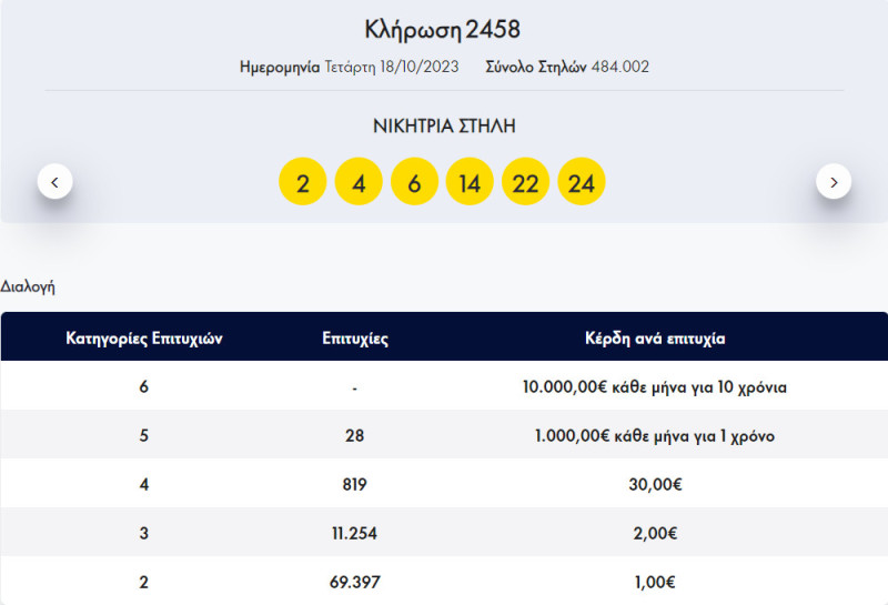 Πιο συγκεκριμένα, ο τυχερός ή τυχερή έπαιξε με τυχαία επιλογή τρεις στήλες και μία από αυτές του προσφέρει το σεβαστό ποσό των 1.000 ευρώ κάθε μήνα για τον επόμενο έναν χρόνο.