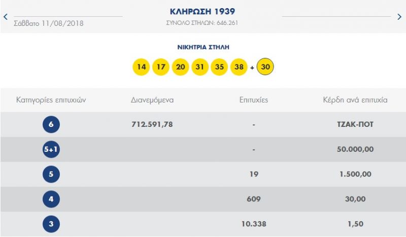 ΛΟΤΤΟ: Τζακ ποτ στις δυο πρώτες κατηγορίες – 19 τυχεροί κέρδισαν από 1.500 ευρώ