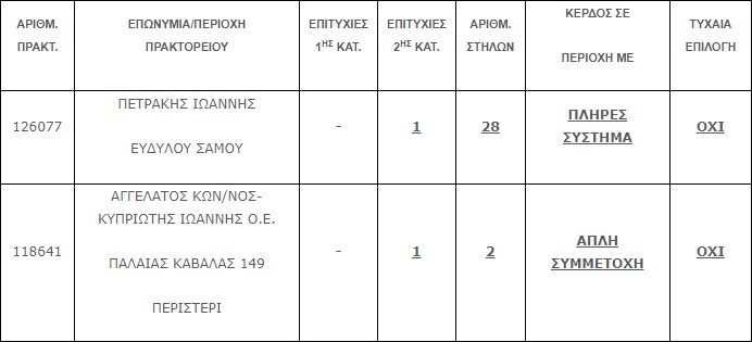Επίσης στην δεύτερη κατηγορία (5+1) βρέθηκαν (2) τυχερά δελτία που κερδίζουν το ποσό των € 50.000,00 το καθένα.