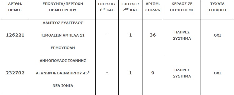 Επίσης στην δεύτερη κατηγορία (5+1) βρέθηκαν δύο (2) τυχερά δελτία που κερδίζουν το ποσό των € 50.000,00 το καθένα.