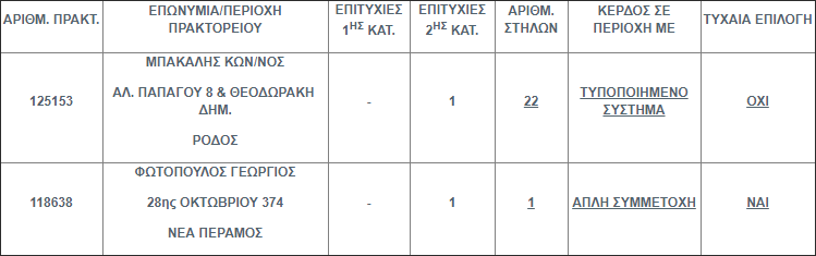 Επίσης στην δεύτερη κατηγορία (5+1) βρέθηκαν δύο (2) τυχερά δελτία που κερδίζουν το ποσό των € 50.000,00 το καθένα.