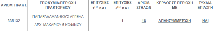 Επίσης στην δεύτερη κατηγορία (5+1) βρέθηκε ένα (1) τυχερό δελτίο που κερδίζει το ποσό των € 50.000,00.