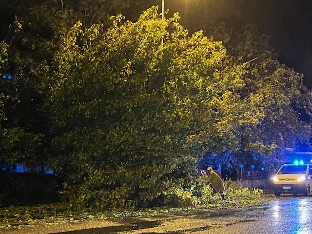 Όπως μεταδίδει το e-maistros.gr, το μέγεθος του δέντρου σκέπασε τη μια λωρίδα της εθνικής οδού με κυκλοφορία να διεξάγεται από το ένα ρεύμα και στις δυο κατευθύνσεις. Δύναμη της Πυροσβεστικής απομακρύνει τα κλαδιά από το δρόμο.