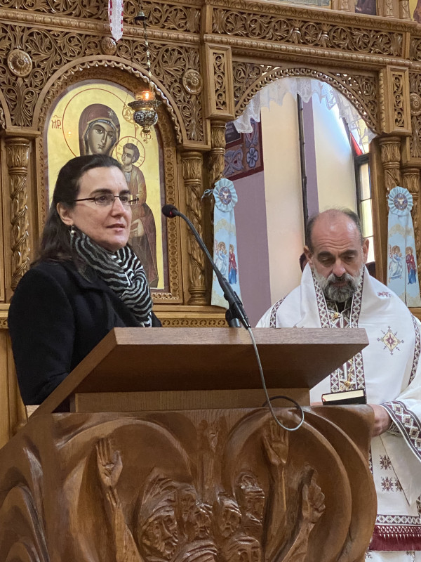 Στις φωτογραφίες: Ο Θεοφιλέστατος Επίσκοπος Αριανζού κ. Βαρθολομαίος, η Γενική Πρόξενος της Ελλάδος στην Φραγκφούρτη κ. Ιωάννα Κριεμπάρδη και ο εκπρόσωπος του Δήμου Ludwigshafen k. Marcel Jurkart