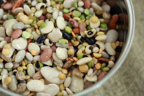 Από το προηγούμενο βράδυ βάζουμε στο νερό τα άσπρα φασόλια, τα ρεβύθια και το σιτάρι σε χωριστά μπολ. Την επόμενη μέρα βράζουμε το σιτάρι μέχρι να μαλακώσει και να αρχίσει να σκάει. Επίσης βάζουμε τα ρεβύθια (σε κρύο νερό ) και, όταν βράσουν περίπου μισή ώρα, προσθέτουμε τα άσπρα φασόλια. Μετά από άλλο ένα μισάωρο προσθέτουμε τα υπόλοιπα όσπρια (που βράζουν πιο εύκολα) και αφήνουμε το μείγμα να βράζει μέχρι όλα τα όσπρια να μαλακώσουν αλλά να μη λιώσουν και να χυλώσουν. Σουρώνουμε τα όσπρια και το σιτάρι, τα ανακατεύουμε σε μεγάλη σαλατιέρα και τα αλατίζουμε. Αφήνουμε να κρυώσουν.