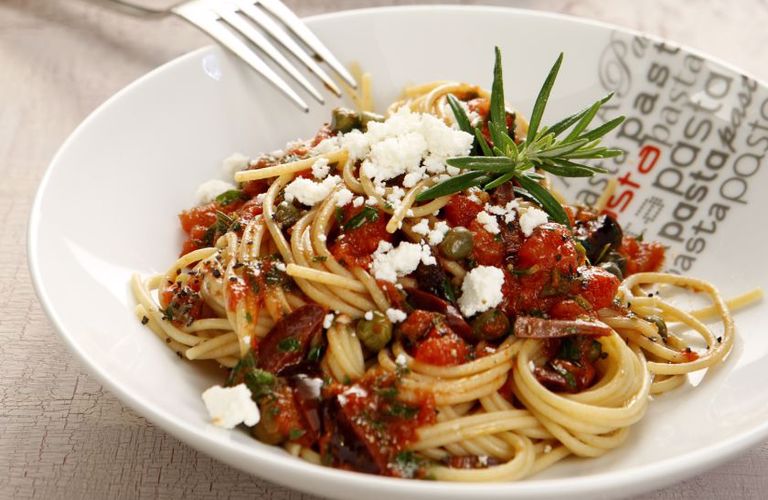 Μακαρόνια με ντομάτα, κάππαρη και ανθότυρο