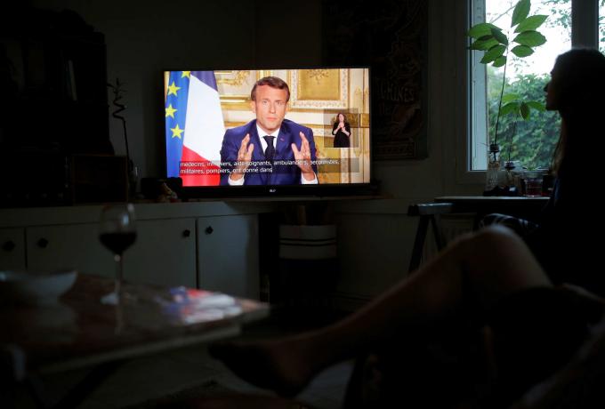 Ο Μακρόν παράτεινε την καραντίνα και τα αυστηρά περιοριστικά μέτρα μέχρι τις 11 Μαΐου, σε τηλεοπτικό του ομιλία που είχε ρεκόρ τηλεθέασης, 36,7 εκατομμύρια πολίτες την παρακολούθησαν, περισσότερο από το ήμισυ του πληθυσμού στη Γαλλία. Είπε ότι η κρίση έφερε στην επιφάνεια λάθη και ελλείψεις στην προετοιμασία του κράτους.