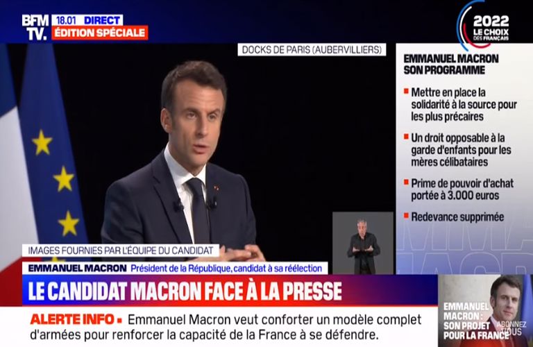 Ως «ηλεκτροσόκ» για το ΝΑΤΟ χαρακτήρισε ο Εμανουέλ Μακρόν την ουκρανική κρίση, κατά τη διάρκεια της παρουσίασης του προεκλογικού του προγραμμάτος για την επανεκλογή του στην προεδρία της Γαλλικής Δημοκρατίας.