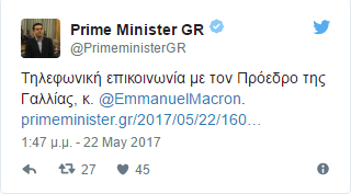 Μακρόν σε Τσίπρα: Συμφωνία για την ελάφρυνση του χρέους