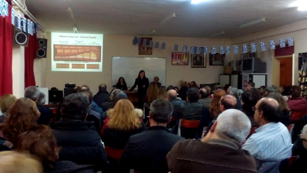Το βράδυ από τις 05:30 μ.μ. έως τις 08:30 μ.μ., παρουσία πλήθους κόσμου, κάτι που εξέπληξε ευχάριστα όλους τους διοργανωτές και παριστάμενους (δεν χώρεσε όλον τον κόσμο η αίθουσα), είχαμε την παρουσίαση του θέματος της ημερίδας το οποίο ήταν: «Κολπική μαρμαρυγή, σακχαρώδης διαβήτης, υπέρταση και λιπίδια».