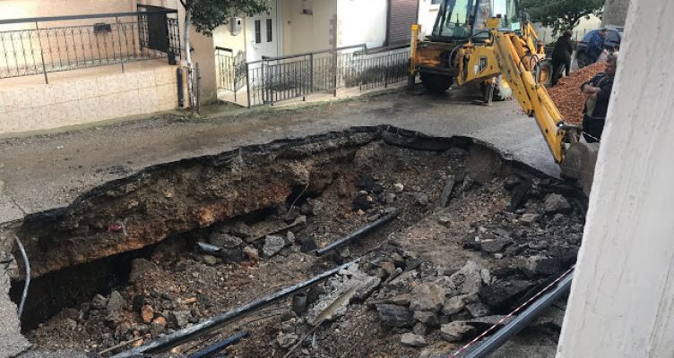 Μεγάλη καθίζηση σε δρόμο μέσα στην Κατούνα (Φωτό)