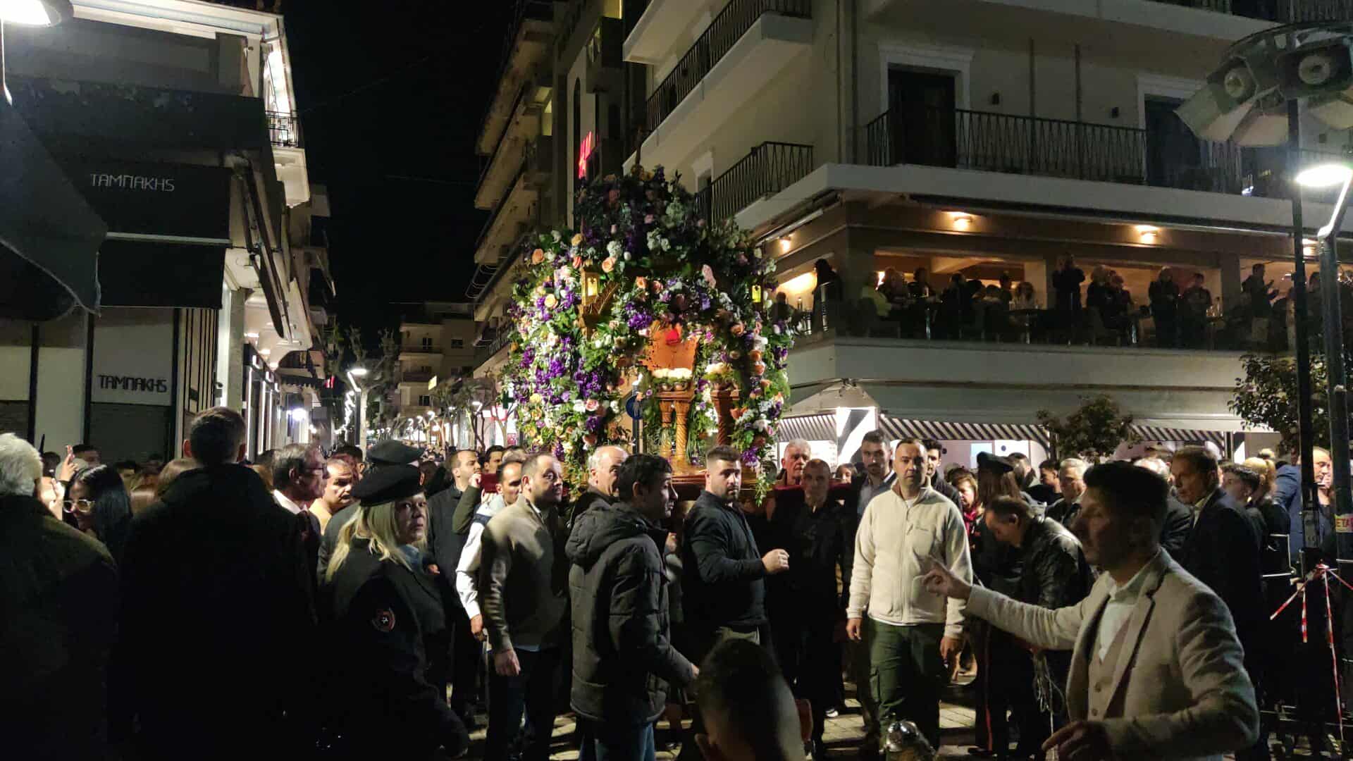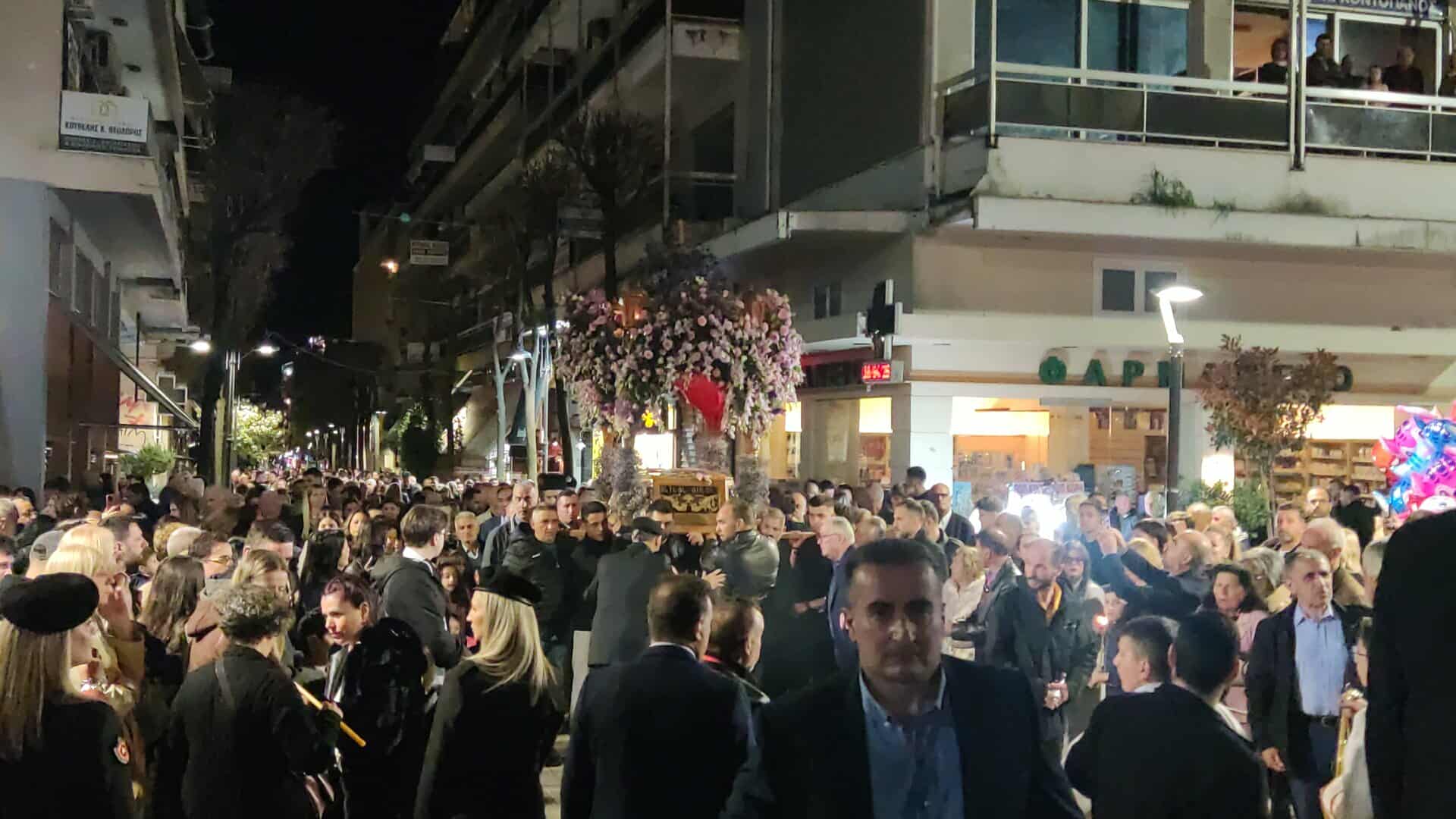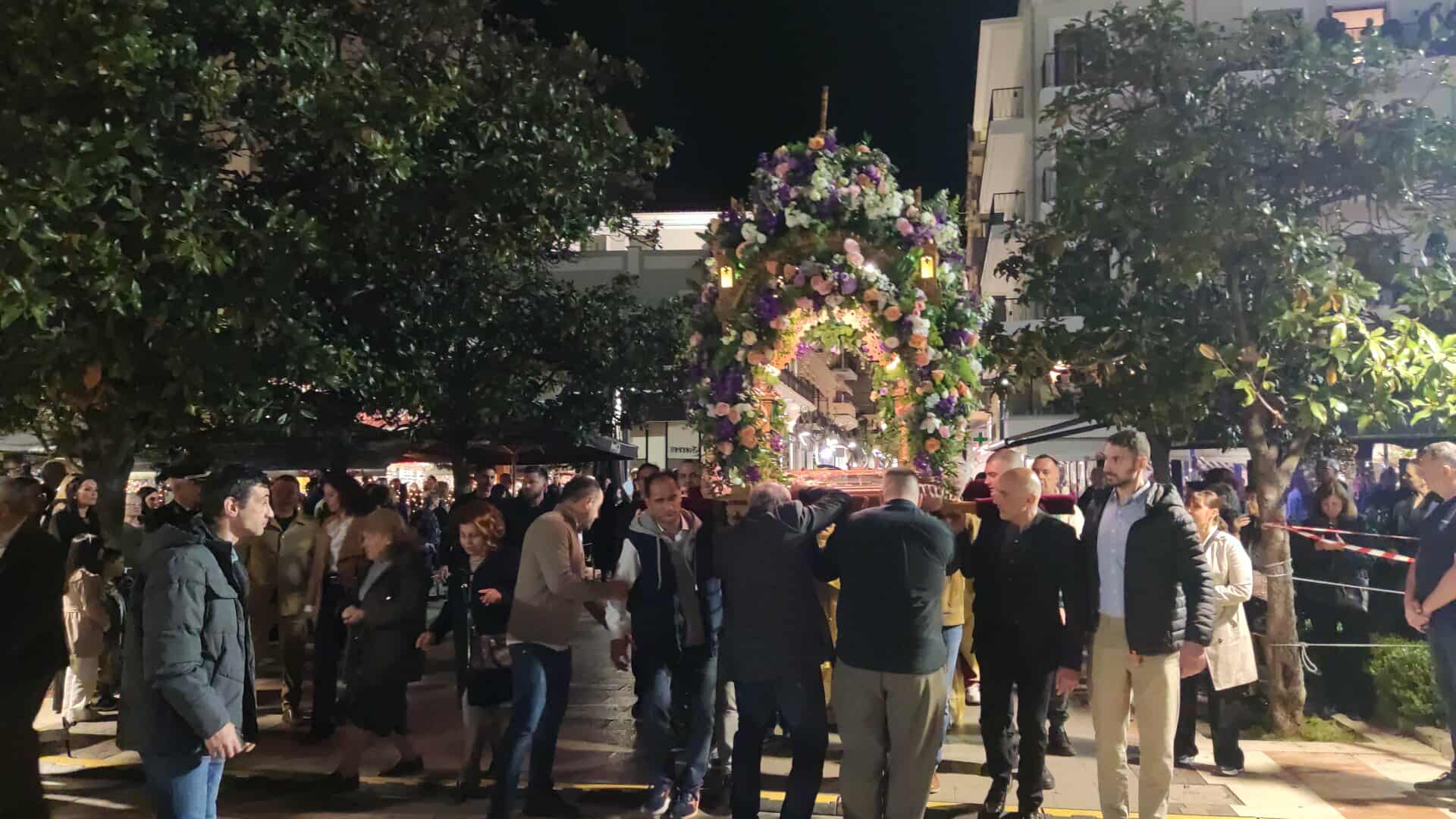 Από το απόγευμα, οι Ναοί των πέντε κεντρικών Ενοριών της πόλης κατακλύστηκαν από κόσμο, ενώ εκατοντάδες πιστοί ακολούθησαν τη Λιτάνευση των Επιταφίων προς την Κεντρική Πλατεία, την Πλατεία Δημοκρατίας, η οποία γέμισε ως είθισται.