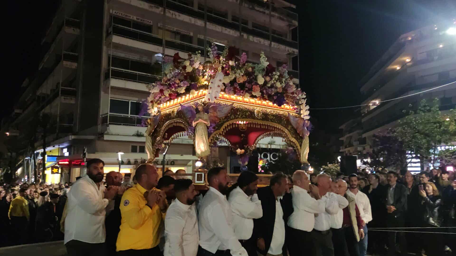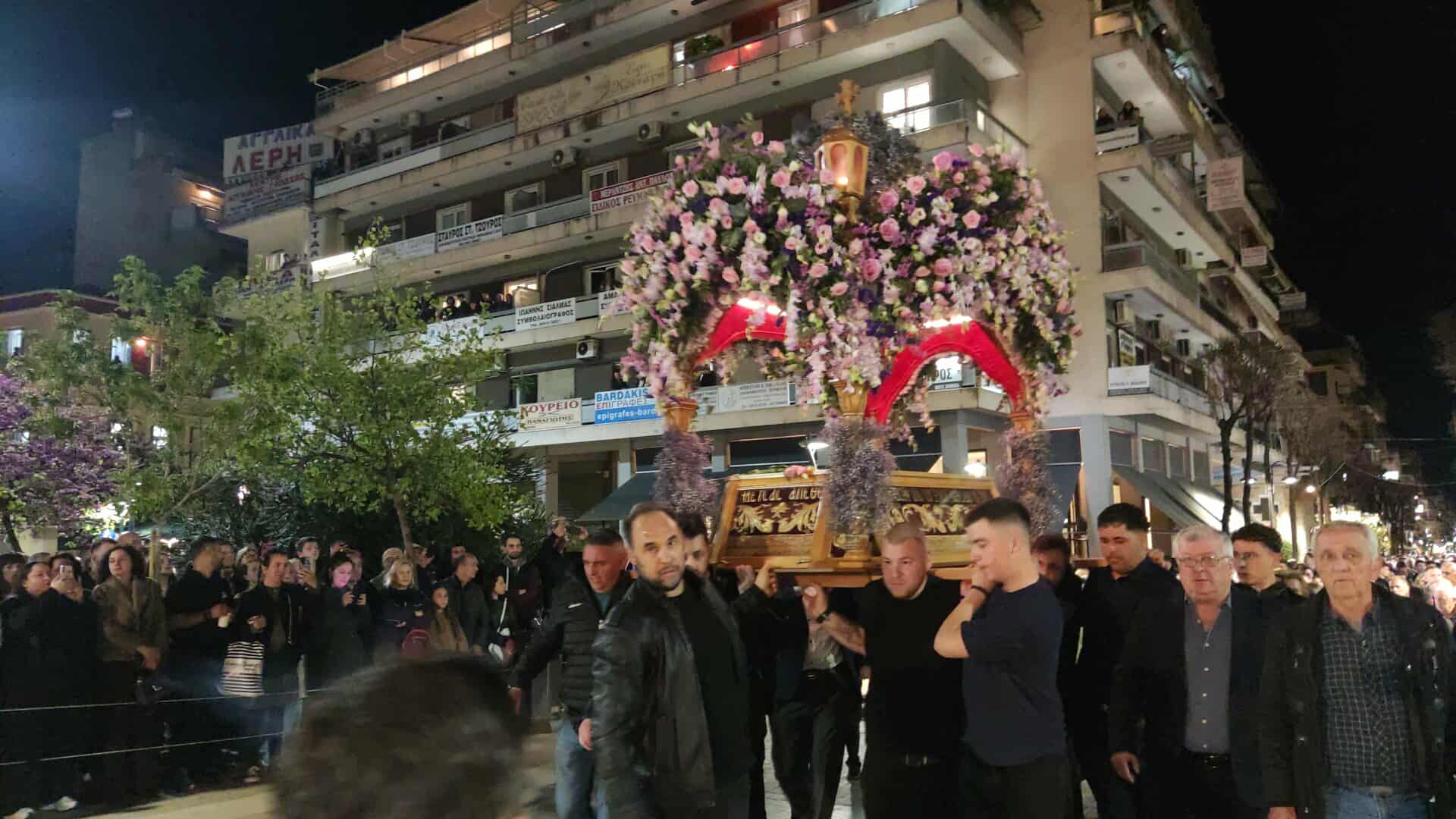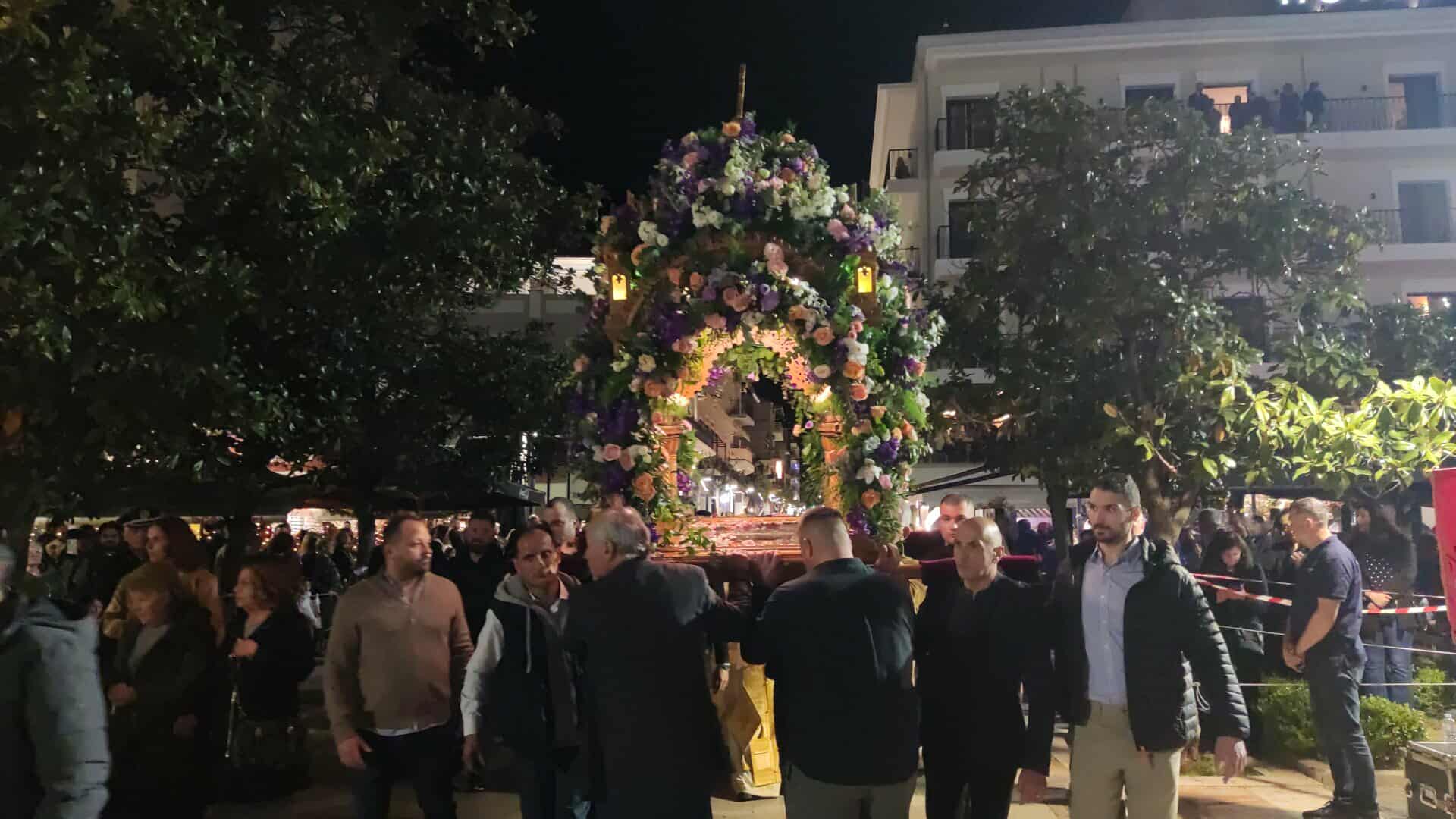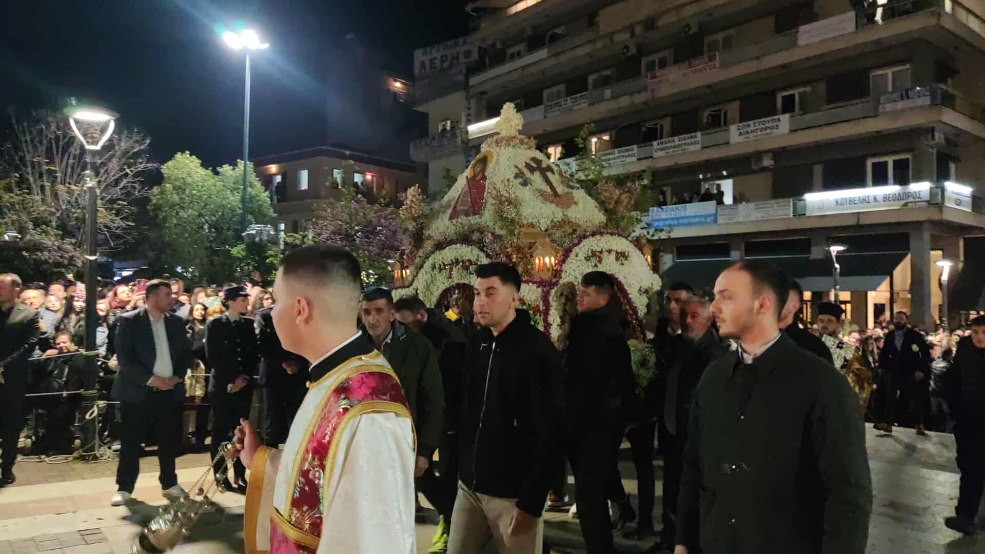 Από το απόγευμα, οι Ναοί των πέντε κεντρικών Ενοριών της πόλης κατακλύστηκαν από κόσμο, ενώ εκατοντάδες πιστοί ακολούθησαν τη Λιτάνευση των Επιταφίων προς την Κεντρική Πλατεία, την Πλατεία Δημοκρατίας, η οποία γέμισε ως είθισται.