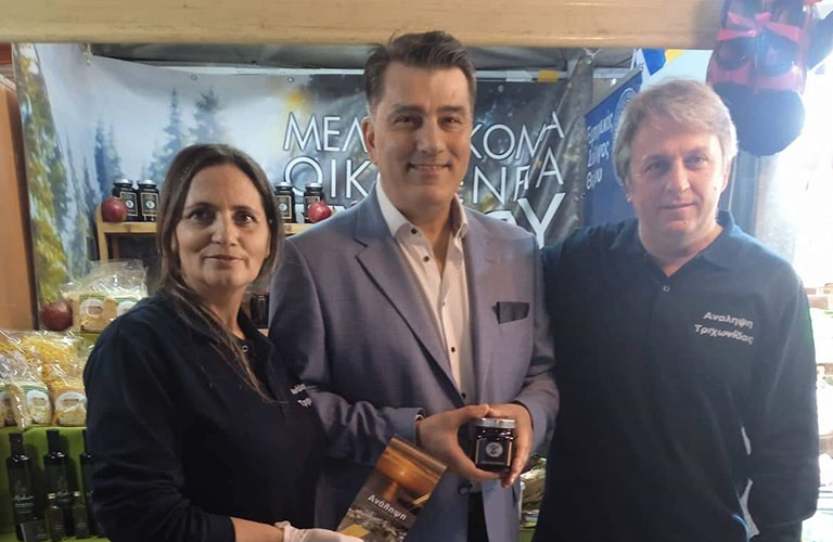 Μέλι, λάδι, ζυμαρικά, μαρμελάδες και γλυκά του κουταλιού παρουσιάστηκαν στο περίπτερο της Ορεινής Τριχωνίδας ενώ οι παραδοσιακές πίτες και το τσίπουρο στόλισε το επίσημο τραπέζι των εγκαινίων που έγιναν από τον Περιφερειάρχη Βορείου Αιγαίου κ. Κουντούρη και τον Αντιπεριφερειάρχη Αττικής κ. Δημόπουλο.