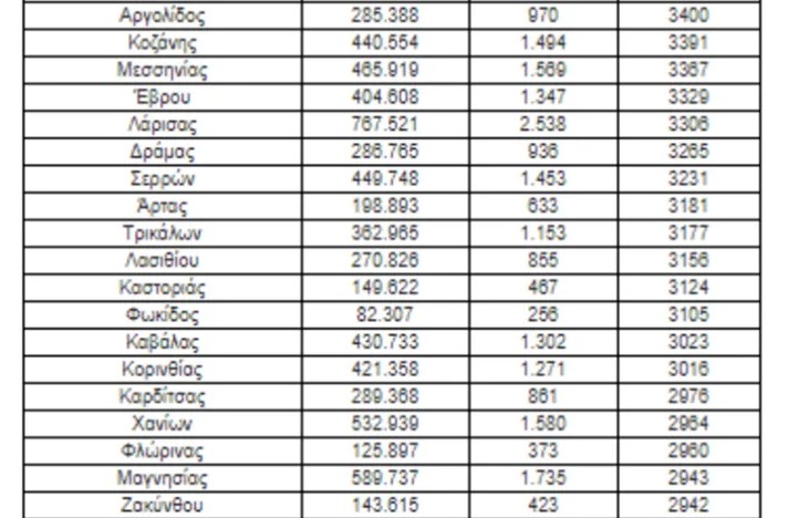 Ο αναλυτικός πίνακας που δημοσιεύεται αναδεικνύει ως μικρότερους καταθέτες τους κατοίκους του Κιλκίς, της Ηλείας, της Ημαθίας κλπ.