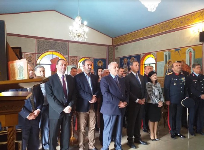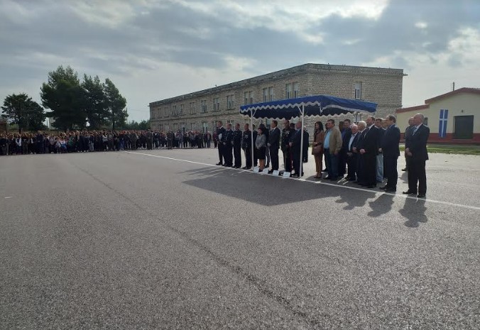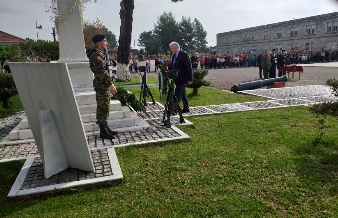 Μετά την Δοξολογία που τελέσθηκε εντός του στρατοπέδου στον Ι.Ν. Αγίου Γεωργίου, ακολούθησε κατάθεση στεφάνων στο Ηρώο Πεσόντων.