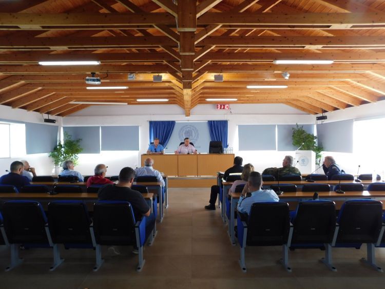 Μετά από πρόκληση του Δημάρχου Νίκου Καραπάνου συνεδρίασε σήμερα στο Μεσολόγγι το Τοπικό Συντονιστικό Όργανο πολιτικής προστασίας του Δήμου Ιεράς Πόλεως Μεσολογγίου. στην συνεδρίαση συμμετείχαν ο Δ/της του 2/39 Συντάγματος Ευζώνων Δ. Σπύρου, ο Διοικητής Αιτωλ/νίας της Πυροσβεστικής Υπηρεσίας Χριστόφορος Μπόκας, εκ μέρους της ΕΛ.ΑΣ. Κ. Κακούσης, ο υπέυθυνος Πολιτικής Προστασίας ΠΕ Αιτωλ/νίας Ι. Τέγας, ο Αντιδήμαρχος Π. Σταράμος, οι Πρόεδροι Αγίου Ηλία Μ. Μπάλας, Αγ. Γεωργίου Η. Διαμαντόπουλος, Κατοχής Γρ. Τρούπος, Ευηνοχωρίου Ν. Ψεύτης,, Σταμνάς Χ. Καπελάρης, Γουριάς Χρ. Μέλλιος και Μεσολογγίου Α. Καζαντζή, εκπρόσωπος του Δασαρχείου καθώς επίσης ο Υπεύθυνος Πολιτικής Προστασίας του Δήμου Ιεράς Πόλεως Μεσολογγίου Χαράλαμπος Κιρκινέζος και υπηρεσιακοί εκπρόσωποι.